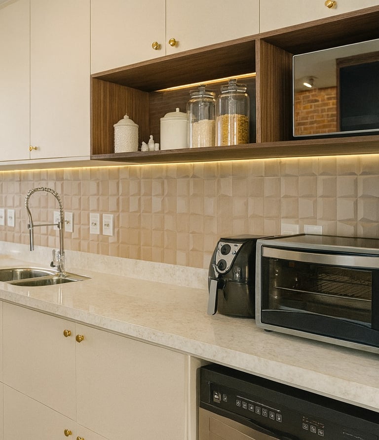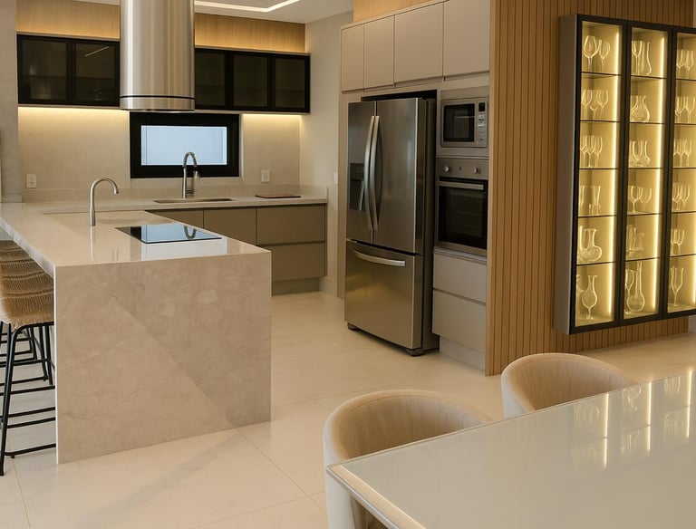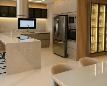 Criamos cozinhas planejadas que são o coração da sua casa. Unimos funcionalidade inteligente e estilo exclusivo para que você tenha mais prazer no seu dia a dia, com um ambiente que é lindo de ver e prático de viver.
